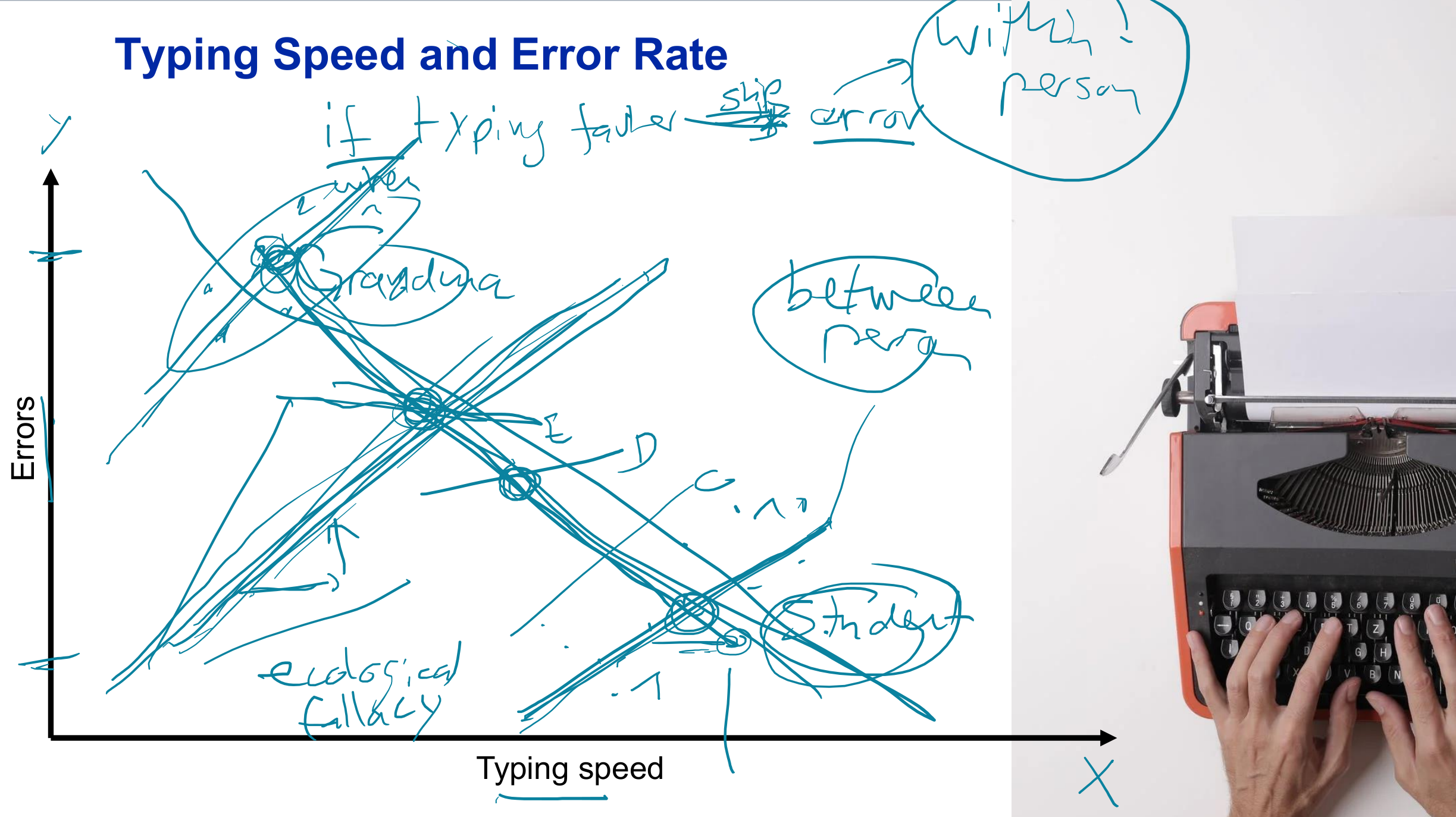Accordingly, it would be incorrect to conclude from cross-sectional data and a between-person analysis that typing speed decreases errors (and that people should thus just speed up if they want to make fewer errors).